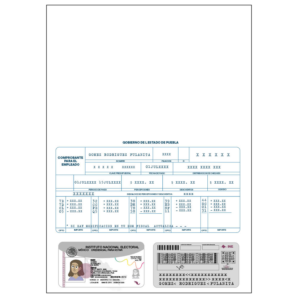 • 2 Copias del último talón de pago con credencial de elector (INE) (Formato correspondiente).